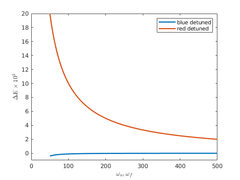 . This formula is applicable only far from resonance and it is asymmetric for red and blue detunings. For lower AC-Stark shifts it is preferable to work with blue detuning