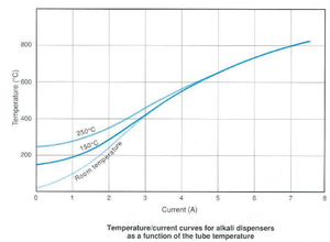Gases released from dispensers: about 1 cc torr/cm where hydrogen was the prevailing constituent. The practical range of current for most dispensers is from 4.5 to 7.5 A. Original packing guarantees a one year shelf life. Dispensers can be exposed to the atmosphere for short periods of times without problems. However, after the original packing has been opened, they must be stored in either dessicators or containers under vacuum.